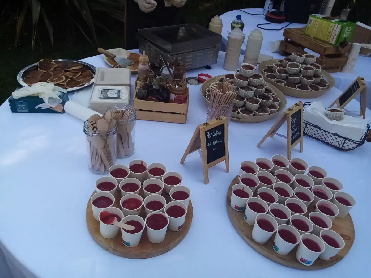 Les brunchs sont composés d'une partie sucrée sous forme de buffet, d'une partie salée servie au foodtruck et de boissons.